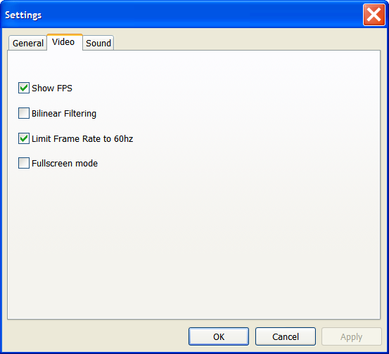 The Video tab of the Settings dialog box allows you to toggle display of your game speed (frames per second, or FPS) and tweak other video-related options, including using full-screen mode.