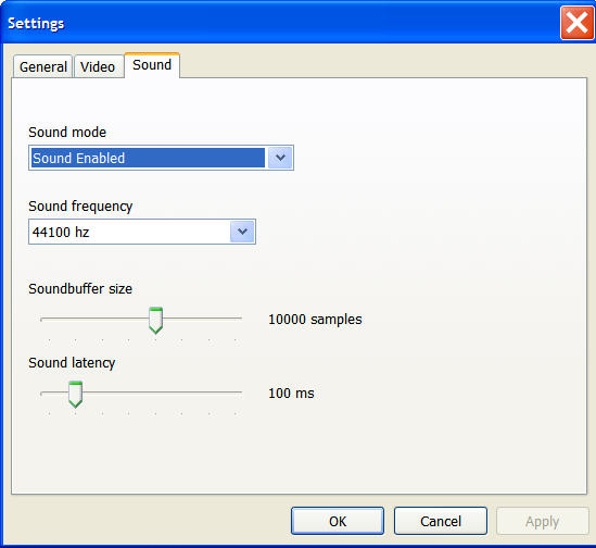 The Sound tab of the Settings dialog box allows you to tweak audio settings. If you find that game performance is subpar on your computer, try disabling audio by setting the Sound mode option to No Sound.