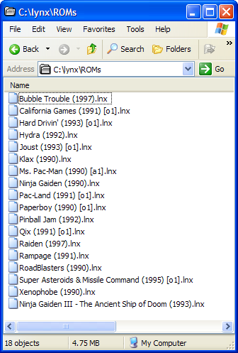 To play Atari Lynx games on your Windows-based PC by using Handy you'll need the following files:
